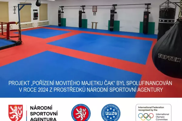 Tisková zpráva. Česká asociace kickboxu z.s. (ČAK) v rámci dotačního programu Národní sportovní agentury „Movité investice – rozvoj materiálně